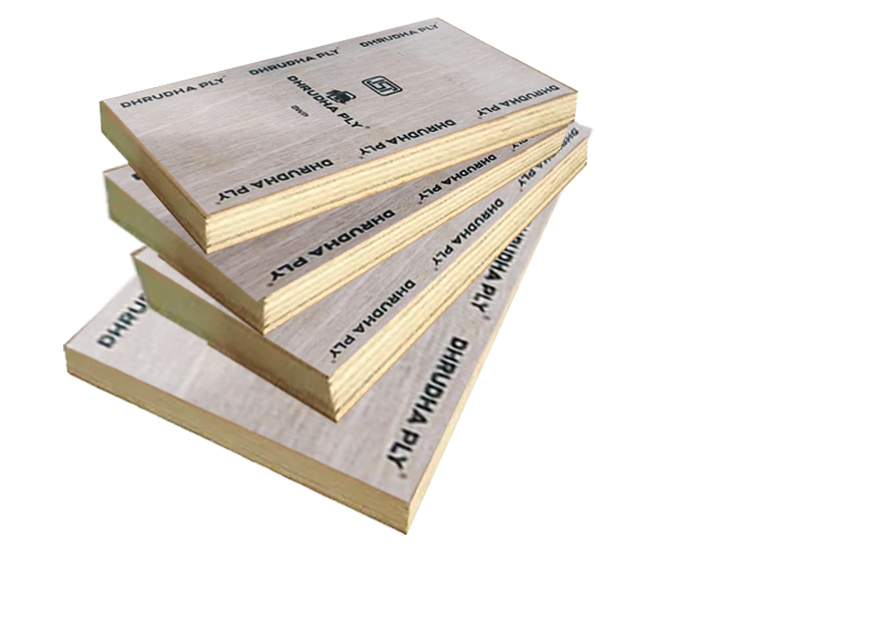 DHRUDHA Ply is made by gluing together thin layers, or "plies," of wood veneer. Each layer is oriented with the grain at a right angle to the previous one, which increases strength and reduces the wood’s tendency to split. This layered structure makes plywood stronger than regular wood and resistant to warping.